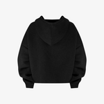 Relaxed drapage with a clean fall. Oversized fit, dropped shoulders, a double-lined cocoon hood, and hidden phantom pockets that disappear into the seams.